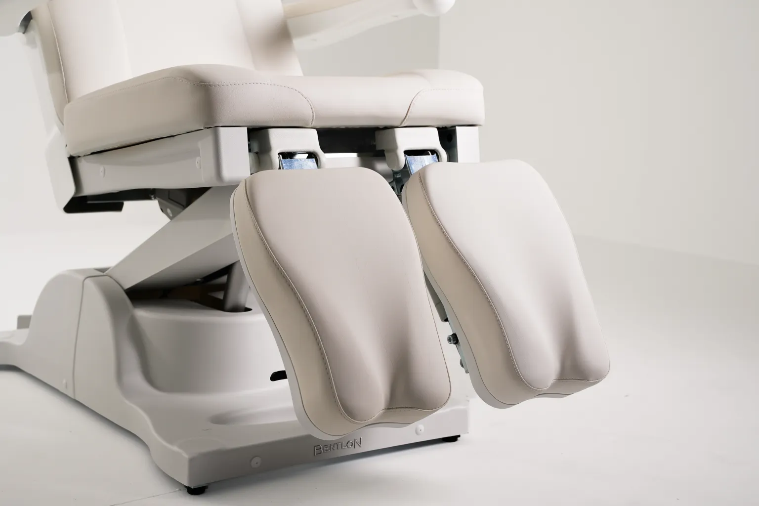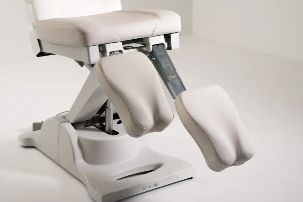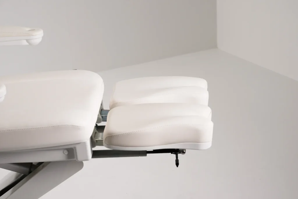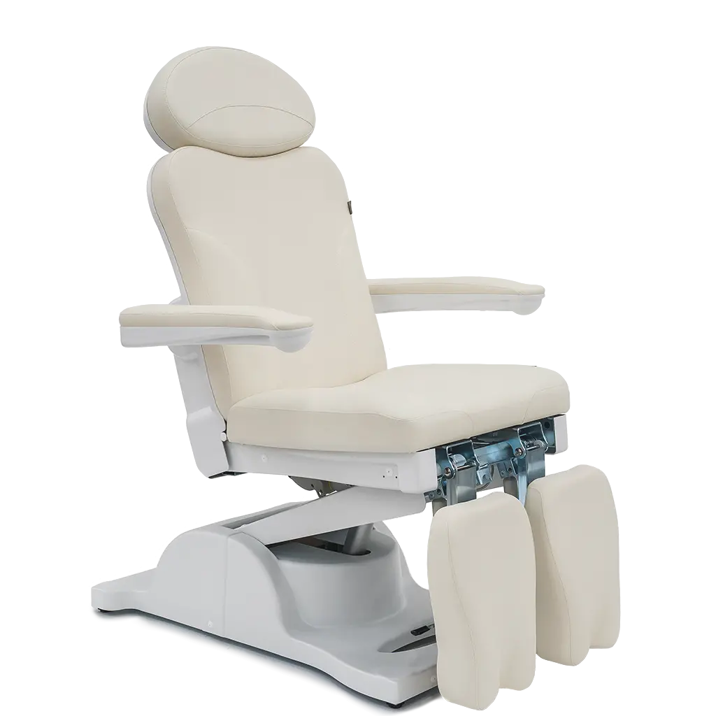 Крісло оснащене трьома потужними електродвигунами, що забезпечують плавне регулювання висоти, спинки та кута нахилу. Ці функції дають змогу створювати гнучкі й зручні робочі положення під час будь-якої подологічної процедури.